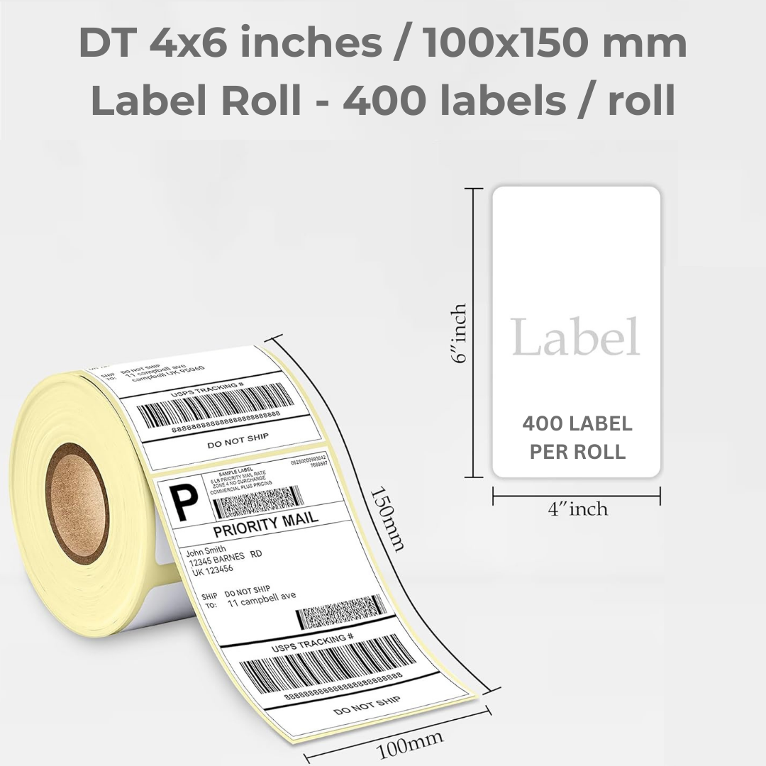 - Size: 4" x 6" (100 x 150 mm) Labels per Roll: 400 labels per roll